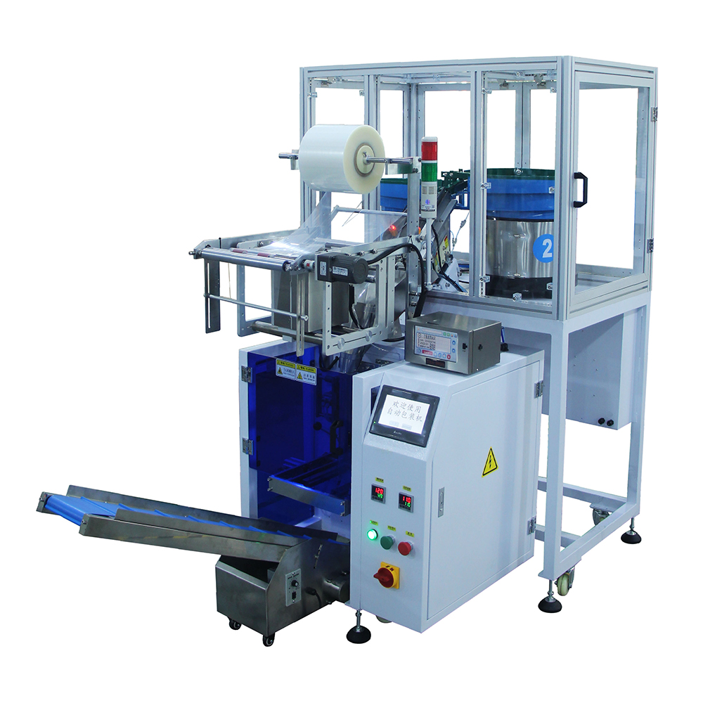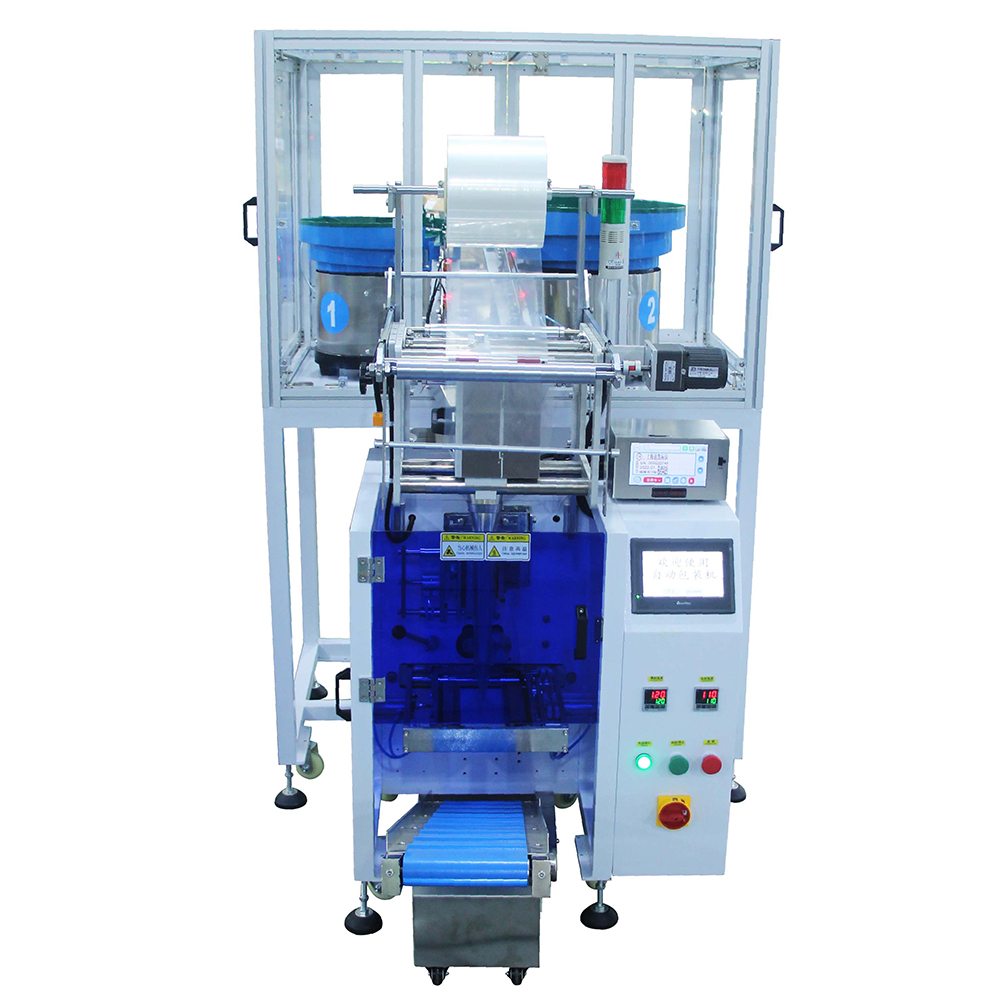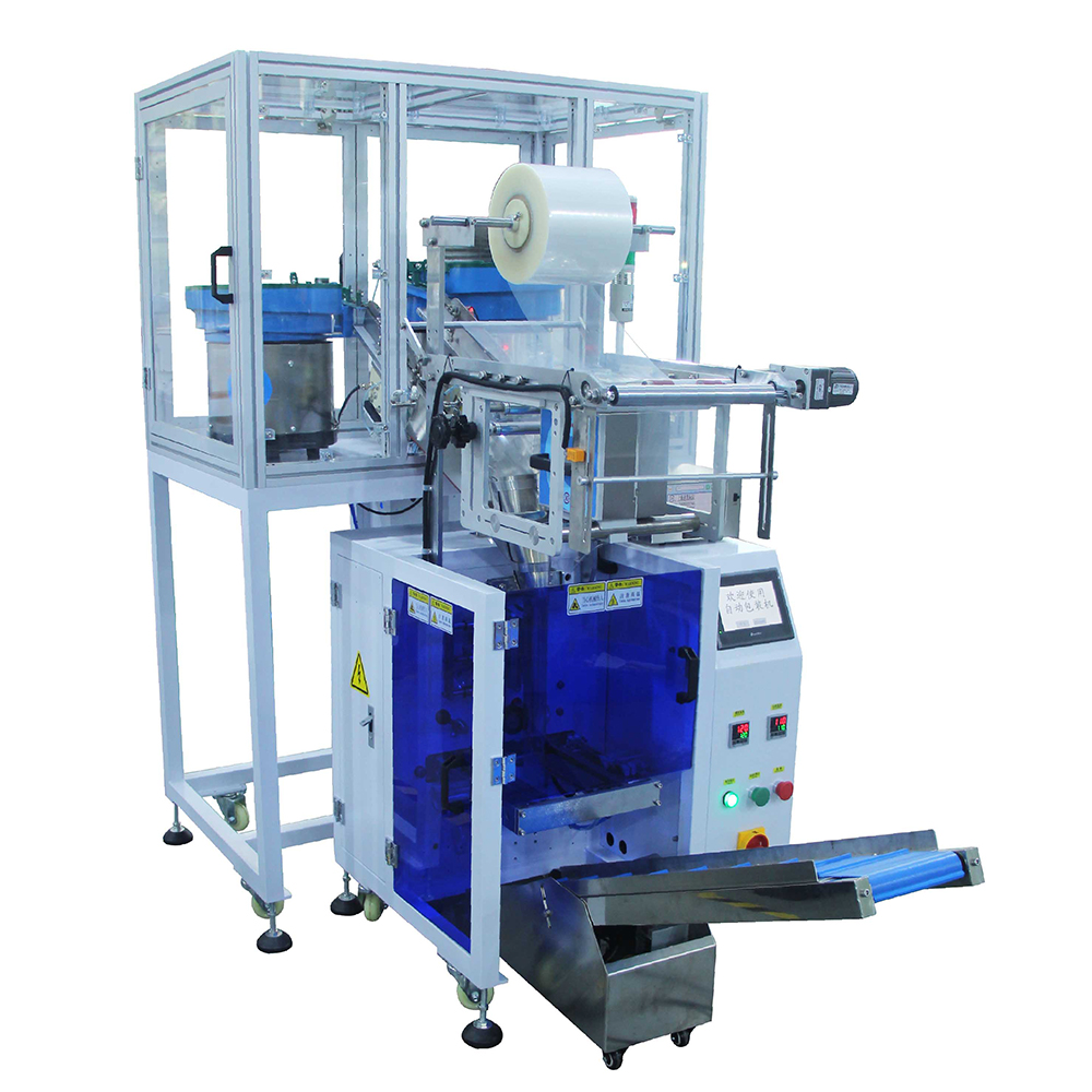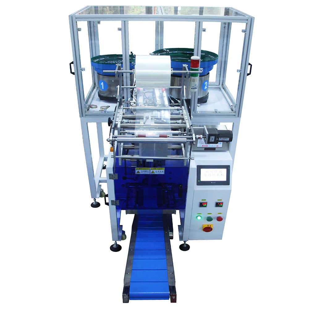 1. This product is suitable for automatic mixing or separate packaging of two materials, such as screws, nuts, flat washers, spring washers, toys, standard parts, etc. After the vibrating plate is automatically counted, the product is filled into the former for automatic packaging.