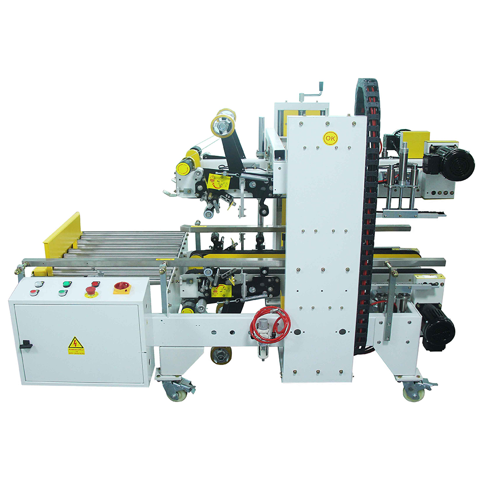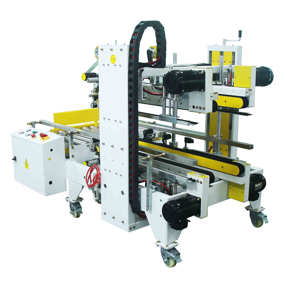 1. The machine includes a 90 degree steering box pushing mechanism, and the four corners of the carton are sealed at the same time.